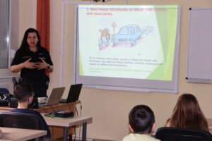 Ezen a héten szociális szakemberek, illetve az állami rendőrség egy századosa tartott tanulóinknak gyakorlati foglalkozásokkal egybekötött előadásokat. A kisebbeknek a biztonságos közlekedés volt napirenden, a nagyobbak pedig az iskolai zaklatásról beszélgettek. Sajnos az egyre egocentrikusabbá vált világunkban fontos tanulóinkat rádöbbentenünk, hogy mindenkinek joga van biztonságos, jó hangulatú iskolai környezetre és ami egyeseknek egy idétlen viselkedésforma csupán, az a másiknak egy nehezen elviselhető verbális zaklatás. Remélem ezek a foglalkozások hozzátettek tanulóink biztonságérzetéhez és ezek a programok idővel folytatódni is fognak más évfolyamokban, más osztályokban is.
