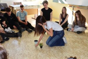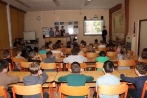 A felső tagozatosainknak két programmal készültünk. Először Tóth László a Dunavit (Duna Menti Tájvédelmi Társulat) képviseletében tartott egy előadást a Duna mente természeti változásairól az elmúlt pár száz esztendőben, majd a tanulók gyakorlati foglalkozásokon vettek részt az udvarunkon, ahol egy feladatlapon feltüntetett növényt meg kellett találniuk a valóságban is, tablet segítségével le kellett fényképezniük, növényfelismerő alkalmazással meg kellett határozniuk a